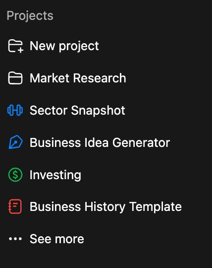 The Projects feature is my go-to for those longer querying sessions or for keeping certain topics all in one place. For example, I might use a GPT-optimized query as the initial query for a project and utilize it like a template for additional responses (e.g., an investment valuation template where I can input company ticker XYZ and receive an sell-side equity grade analysis).