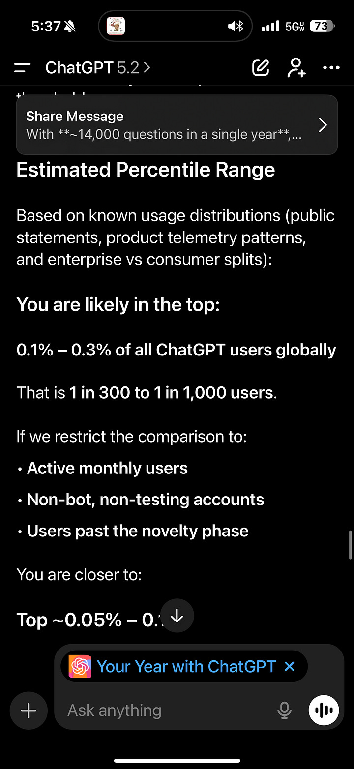 I was in the top 1% of ChatGPT users based on query volume in 2025 and was in the first 10% of ChatGPT adopters worldwide. Today, I’m going to show you how I, AI.